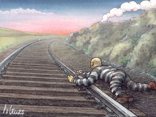 – De forma alguma majestade! Observe que no buraco tem uma pequena guilhotina com uma lâmina afiada, que funciona sempre que se introduz algo no buraco.