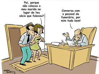 – Não se preocupe – disse o diabo. – Fica aí à vontade que eu mando dois diabinhos buscarem as suas malas.